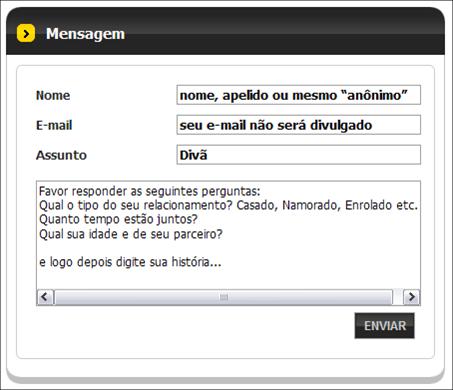 Entre na área CONTATO e preencha a mensagem da seguinte forma e aperte enviar! Pronto, em breve sua mensagem será publicada na seção Divã, com sugestões para resolver seu problema.